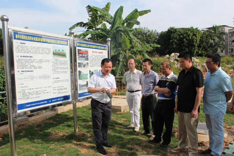 覃永武一行考察了面源生活污水处理及环境改善关键技术研究与工程示范项目,听取项目实施情况汇报后对取得的成效给予了充分肯定,并实地查看了污水处理前后的水体质量变化情况,详细了解项目在实施和维护过程中遇到的困难。