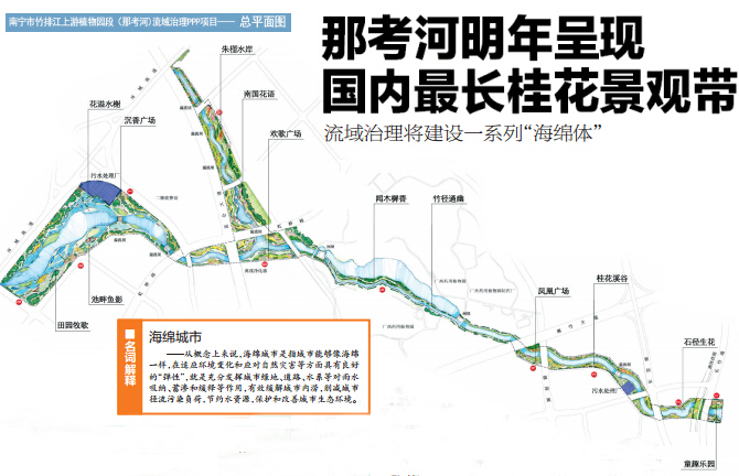 《南宁市竹排江上游植物园段(那考河)流域治理PPP项目》是南宁市向国家申报“海绵城市”示范区范围内的项目,是南宁市去年开展南宁“中国水城”规划建设中期评估后的一个重大城市内河治理工程,也是广西首个采用政府和社会资本合作模式(PPP)建设的项目,同时也是2015年全国首个开工建设的水流域治理(PPP)项目。