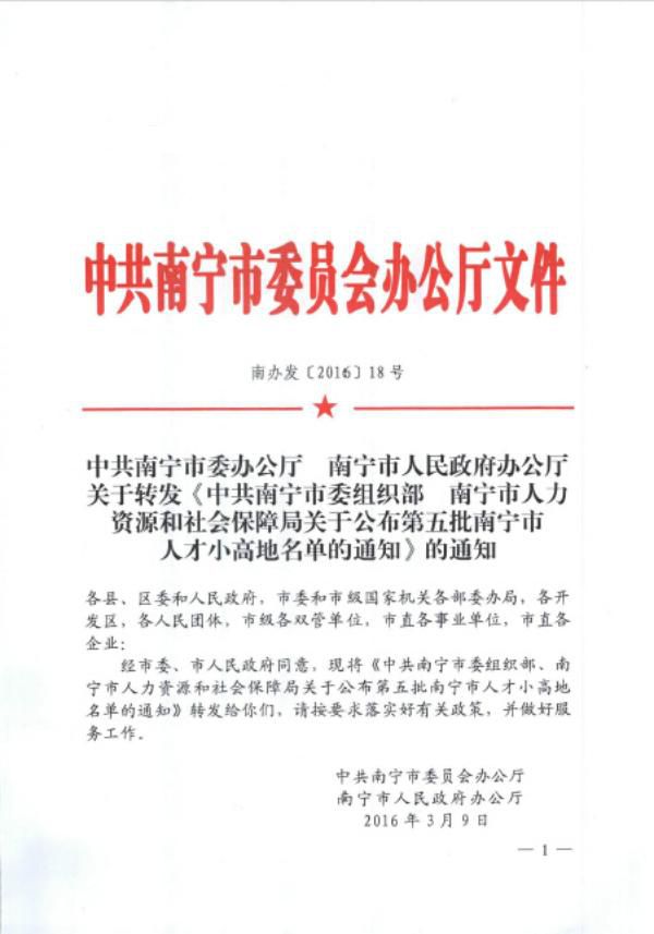 3月9日,中共南宁市委员会办公厅下发了《中共南宁市委组织部 南宁市人力资源和社会保障局关于公布第五批南宁市人才小高地名单的通知》文件,经过严格筛选、专家评委会评审、市人才小高地建设工作领导小组审定,益江环保凭借在村镇污水处理领域的突出贡献,被授予“南宁市乡镇农村生活污水治理人才小高地”称号。