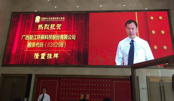 9月14日上午11时,广西益江环保科技股份有限公司(证券简称:益江环保,证券代码:838298)在北京全国中小企业股份转让系统中心隆重举行新三板挂牌敲钟仪式。益江环保司董事长胡湛波、公司董监高及核心员工、主办券商代表等一行人共同出席挂牌仪式,一同见证益江环保这一重要时刻。