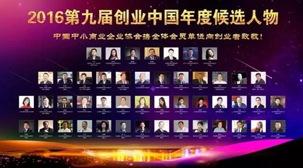 2016年9月24日,第九届创业中国年度人物总评榜发布仪式暨颁奖典礼在北京举行。本次活动由中国中小商业企业协会、中华职业教育社、中国商业联合会联合主办,得到中央电视台、中央人民广播电台、新华网、中国青年报创业周刊等多家媒体的大力支持。全国政协委员、九三学社中央常委徐国权,国务院特殊津贴专家、中国中小商业企业协会特邀副会长刘学民等相关领导出席会议。