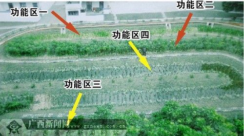 “这种技术值得在人口较少的农村推广。”胡湛波称,他们采用水生植物和生态填料的净化、吸附功能的生态技术,通过水流方向向上不同空间的错位布置,以4个功能区不断处理污水和净化环境,在第一功能区内铺有一层砖、一层砾石,以及一些常见的水菖蒲。然后利用较强的吸附能力和透水功能,吸收水里的氮、磷等污染物。这时,污水中60%的污染物被吸收、转化掉了。而进入到第二功能区后,功能区的植物由水菖蒲改成了风车草,这些植物也能很好地吸收氮、磷等化学物质,因此污水中又有80%的污染物被甩掉了。流入第三功能区后,铺设的生态砖、砾石以及种上的风车草、再力花再次强化处理污水;而第四功能区则主要是种植着水葱、花叶芦竹等观赏植物,还有养在水中的鲤鱼,形成一个村中生态湿地公园,改变村民对污水处理系统的不良印象。