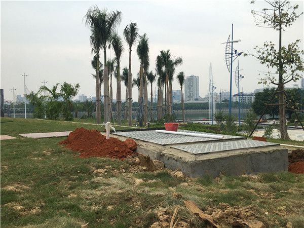 本项目综合采用了益江环保自主研发的海绵城市雨水处理集成技术,该技术集雨水收集、过滤净化、消毒、回用及自动化智能控制系统为一体,具有结构紧凑、占地面积小、无需建造机房、维护简单、操作便捷、坚固耐腐蚀等诸多优势,雨水经处理后出水水质清澈透明,主要指标达到观赏性用水标准。